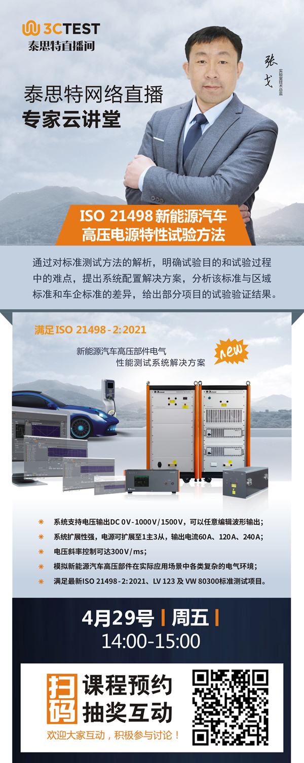 泰思特云講堂 | ISO 21498新能源汽車高壓電源特性試驗方法