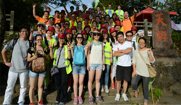 下午的行程是游覽武夷第一勝地-天游峰。登上景區托馬斯觀光車,沿途領略青山綠水、藍天白云的勝境、呼吸著最原始生態的空氣,感受來自大自然的賜予,不知不覺來到景點。蜿蜒的石階小路一眼望不到頭,陡峭的磐石,崎嶇狹窄石階及其險峻。泰思特的小伙伴們身上綠色馬甲在蜿蜒的臺階上組成了一條綠色的長龍,各小分隊的旗子隨風舞動,成了景區另一道獨特的風景,歡笑聲、尖叫聲、加油聲在山間回蕩。經過大家堅持不懈的努力,終于把天游峰踩在腳下。站在山頂,極目遠眺,武夷山美景盡收眼底。又是興奮、又是收獲。