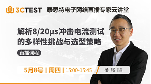 直播時間:2025年5月8日(周四)下午15:00-15:45 課程摘要:解析8/20μs沖擊電流測試的多樣性挑戰與選型策略