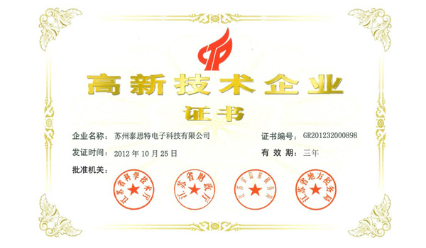 經(jīng)過江蘇省高新技術(shù)企業(yè)認定部門及專家的嚴格審查,蘇州泰思特電子科技有限公司被認定為江蘇省高新技術(shù)企業(yè)。